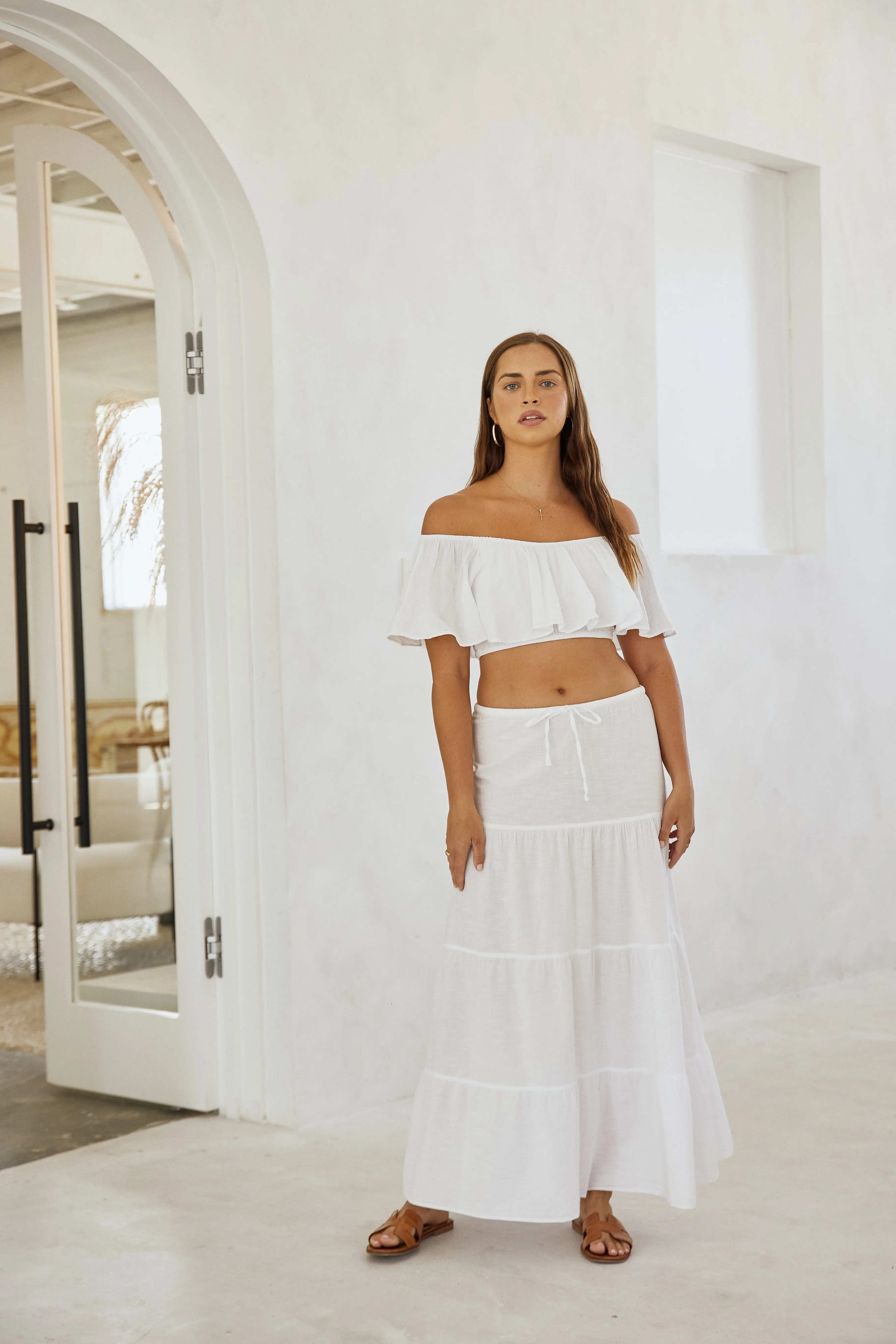 Whether youβre on vacation, on the go, or at brunch with friends, the Gaia Skirt is a must-have staple for your closet! This maxi skirt features an adjustable waist tie and a ruched trimming detail. It is made from a high quality cotton fabric. Style this skirt up or down!Β